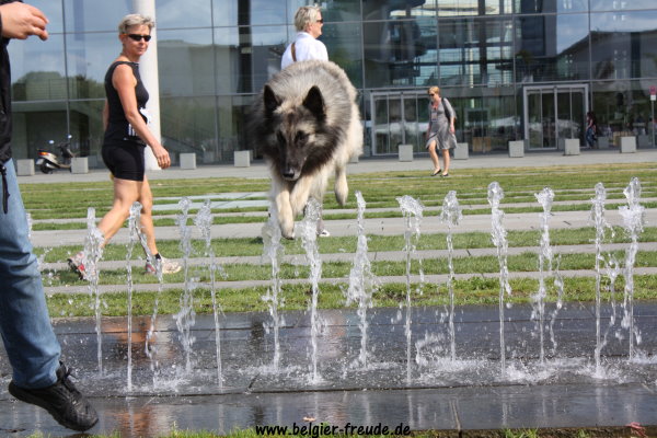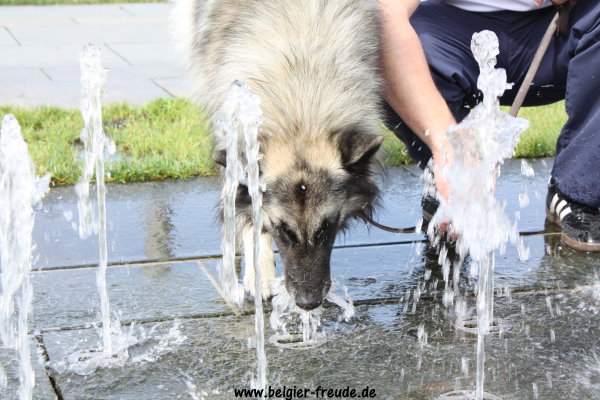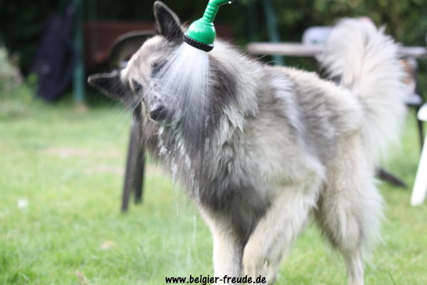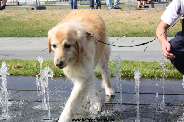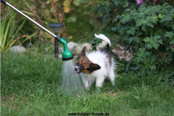 Frauchen sagt: "Wasser kann noch toller sein!"